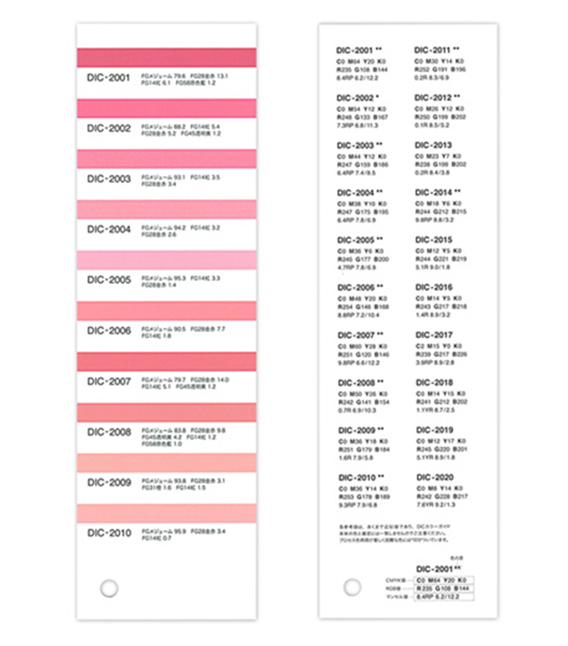 由於 DIC 色彩指南系列是印刷品,可能會因老化而出現印刷錯誤和顏色變化。