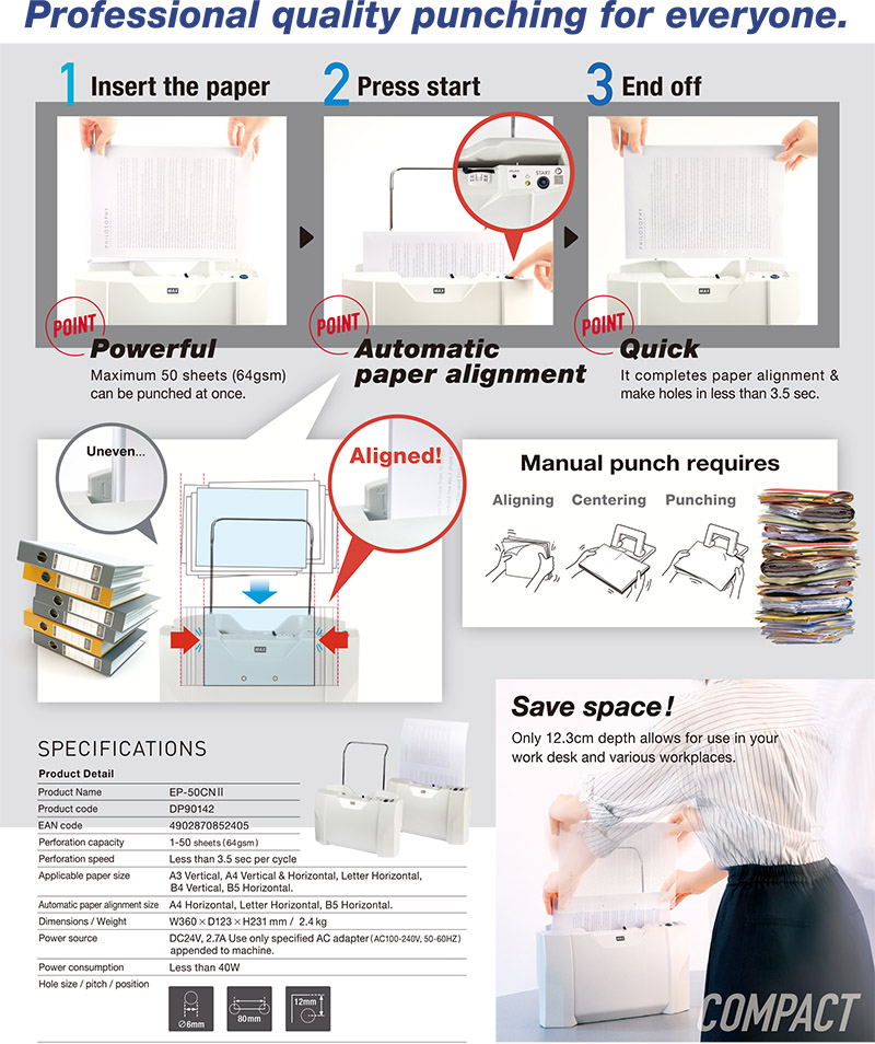 打孔張數:1~50張 (64磅紙)