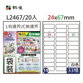 商品名稱:鶴屋 A4電腦標籤 24x67mm(圓角) 20張入 / 包 L2467
