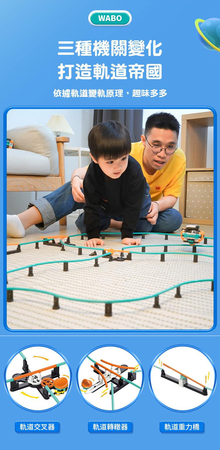 超好玩的 Wabo軌道平衡機器人,親子同樂組裝,軌道有三種機關變換,可多組軌道組合,也可以在不同物品上平衡行走。