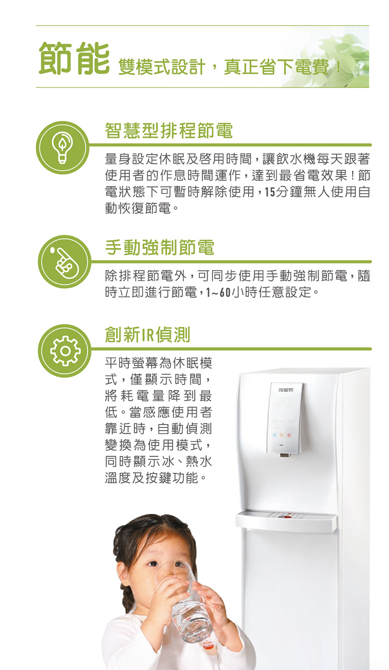 杯取量:熱水13.6公升/小時,冰水6.2公升/小時