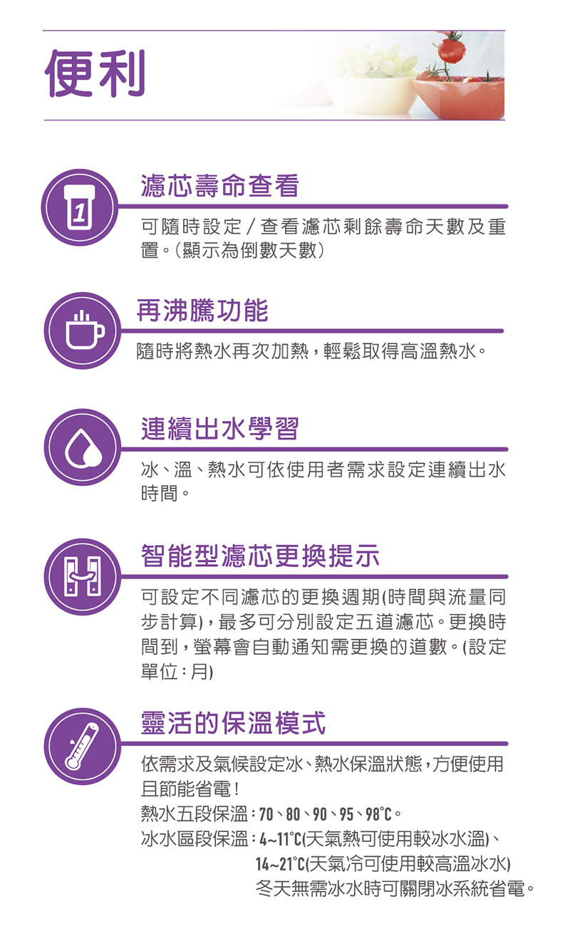 ◎智能濾芯更換提醒,新卡式濾芯設計,輕鬆DIY不費力
