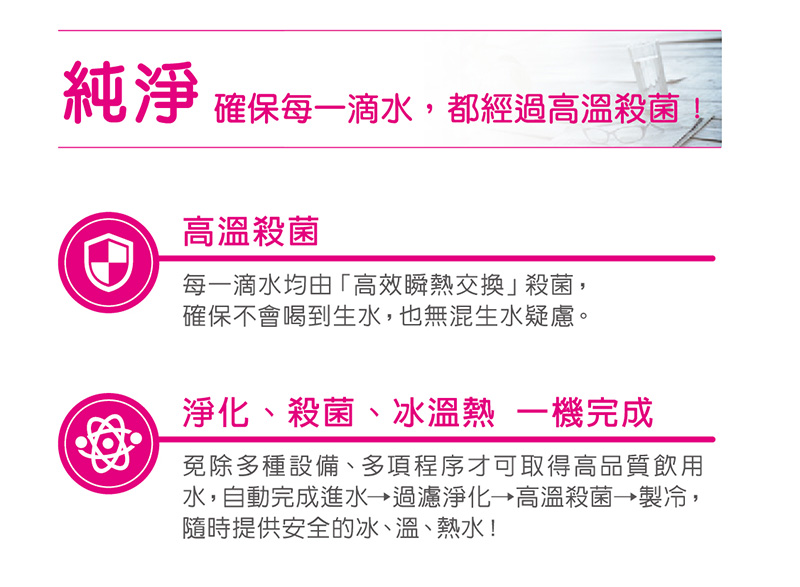 ◎「高效瞬熱交換」殺菌,保證喝不到生水