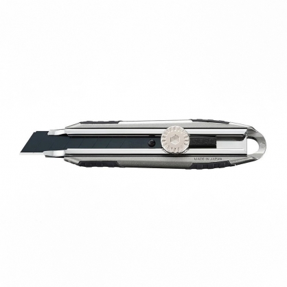為了高效切割,請配備 OLFA 18mm MXP-L 壓鑄鋁手柄旋輪刀。堅固的手柄提供符合人體工學的抓握感,同時保持重量輕。防滑橡膠握把提供全天的舒適和安全。黃銅鎖定銷可保持刀片的位置,以便放心切割。使用旋輪鎖來設定刀片長度,以進行不同深度的切割。工具底部的大環可以用於連接到掛繩或存放在掛鉤上。