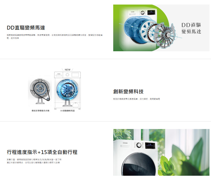 領先業界 全方位保固服務:1年全機保固,3年電子機板、軸受運轉組,5年馬達保固