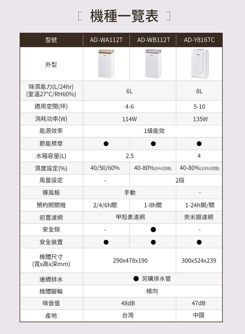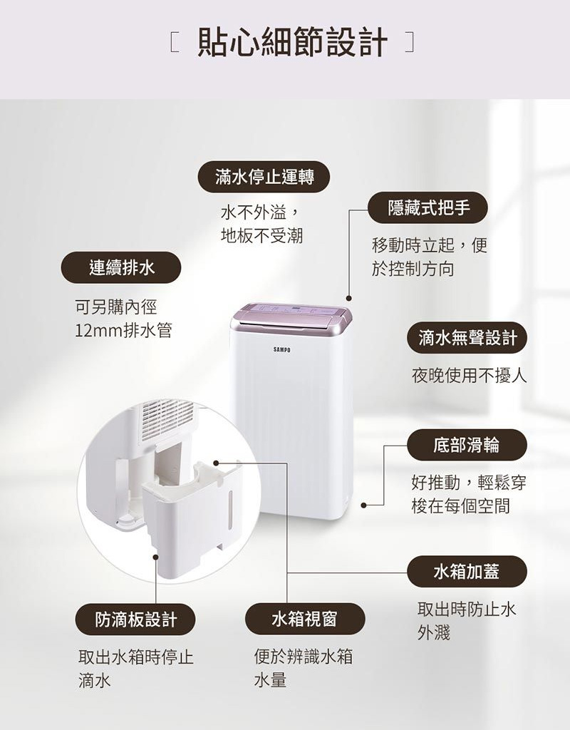 特殊功能:具連續排水功能、可除霜、水箱加蓋