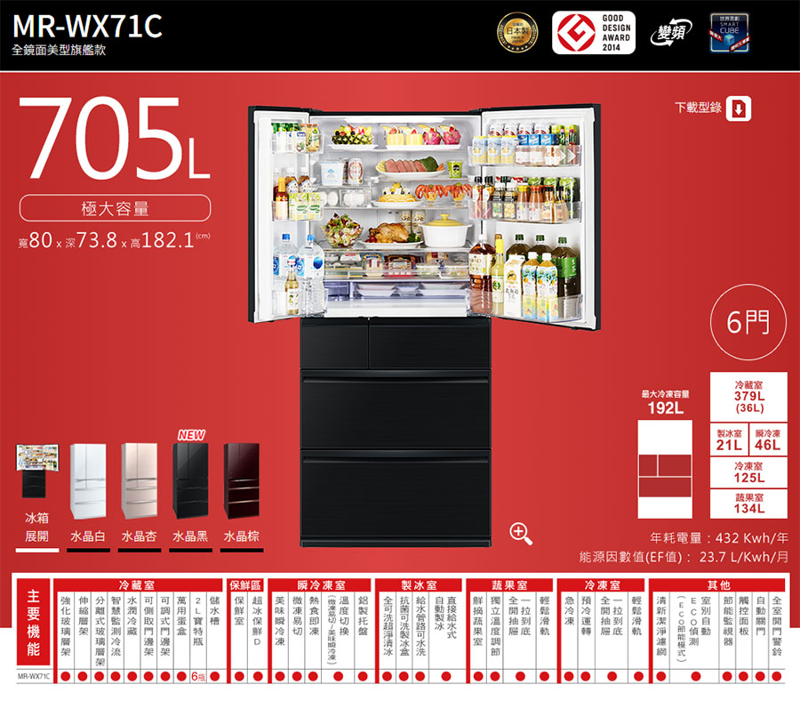 型號:MR-WX71C-BR-C / MR-WX47LF-F-C / MR-WX47LF-W-C