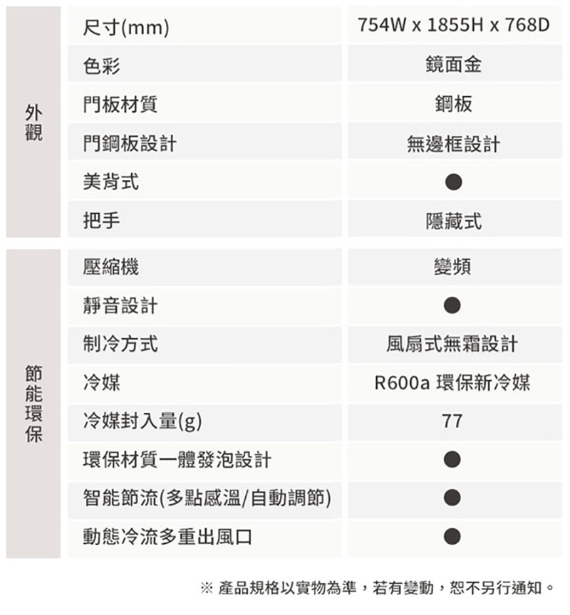 ◎冰溫保鮮室 x 可調濕度蔬果箱