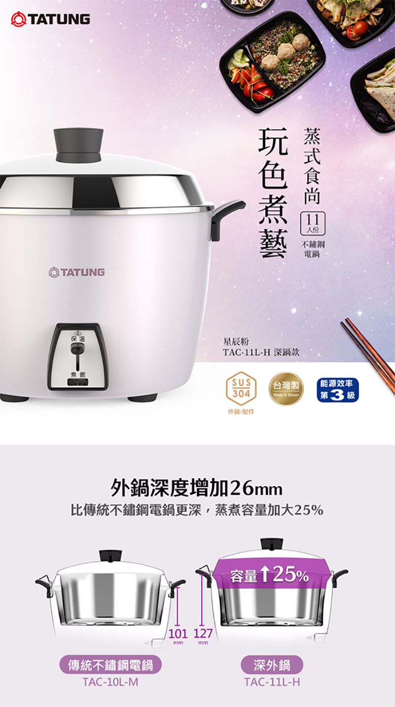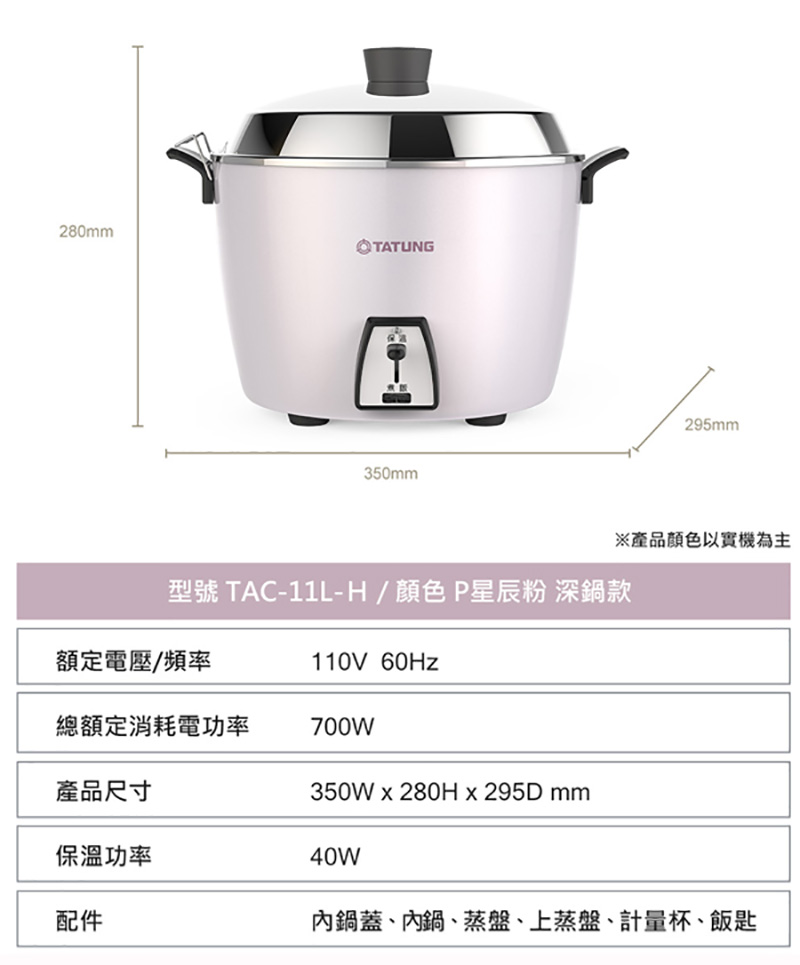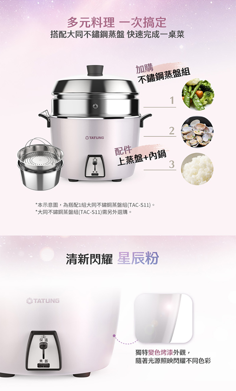 TATUNG大同 11人份星辰粉不鏽鋼配件深鍋款電鍋 /台 TAC-11L-HP