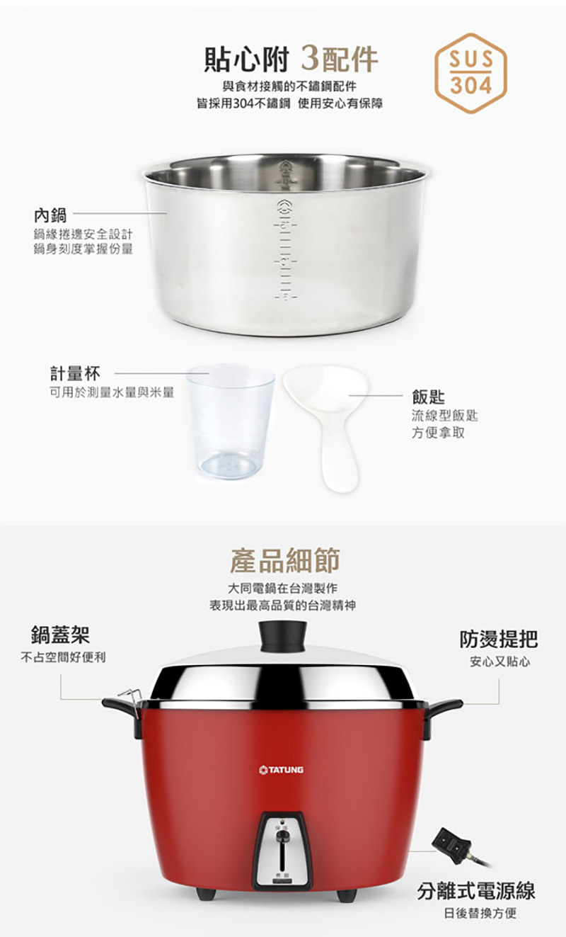 ◎鍋蓋、內外鍋均為SUS 304 不鏽鋼