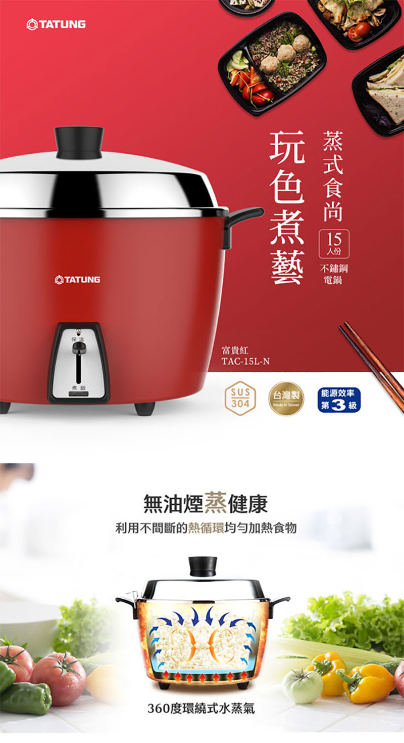 TATUNG大同 15人份 富貴紅 不鏽鋼配件電鍋 /台 TAC-15L-NCRE