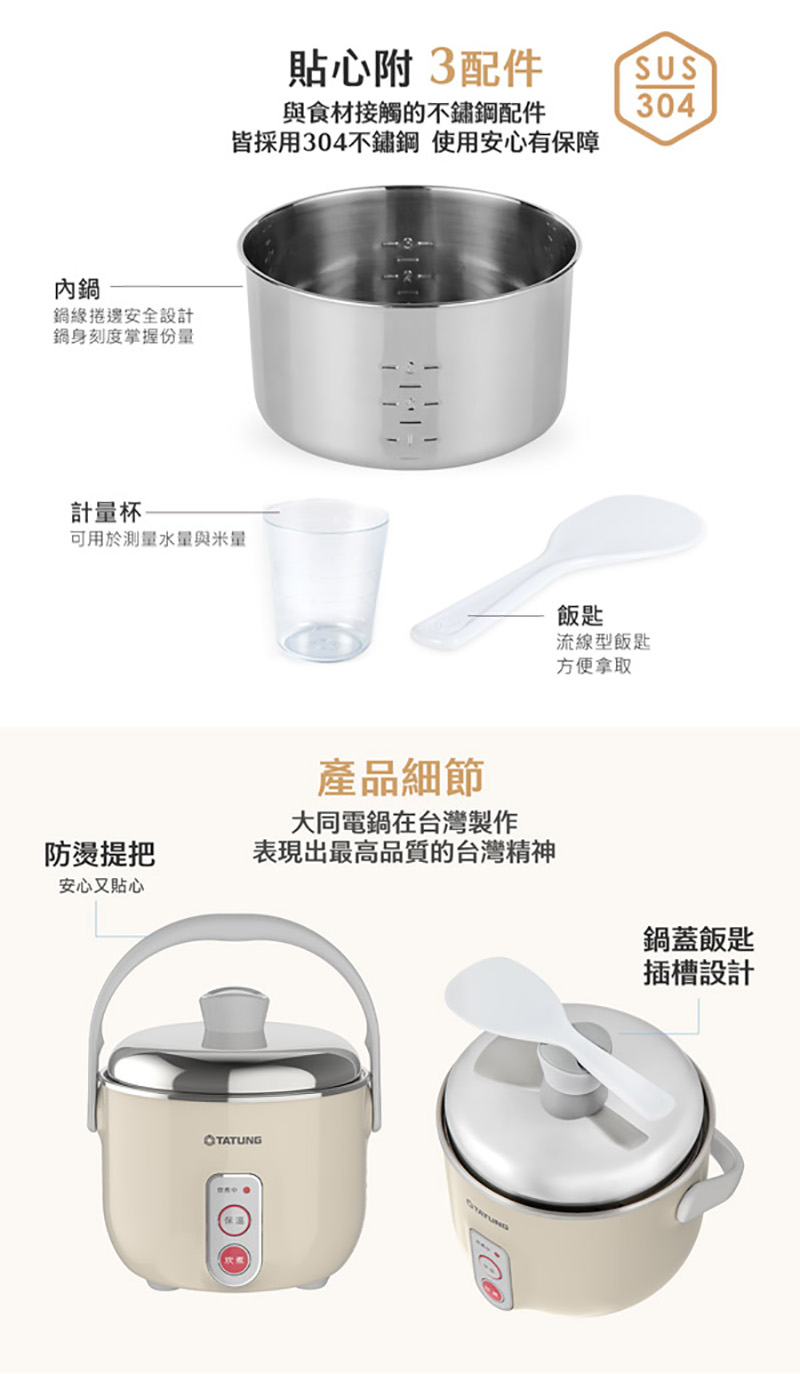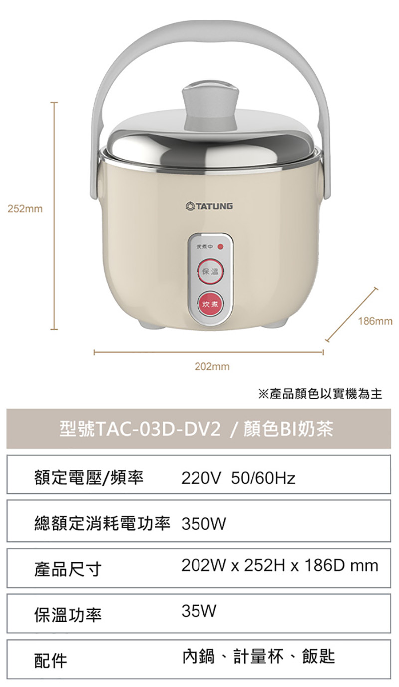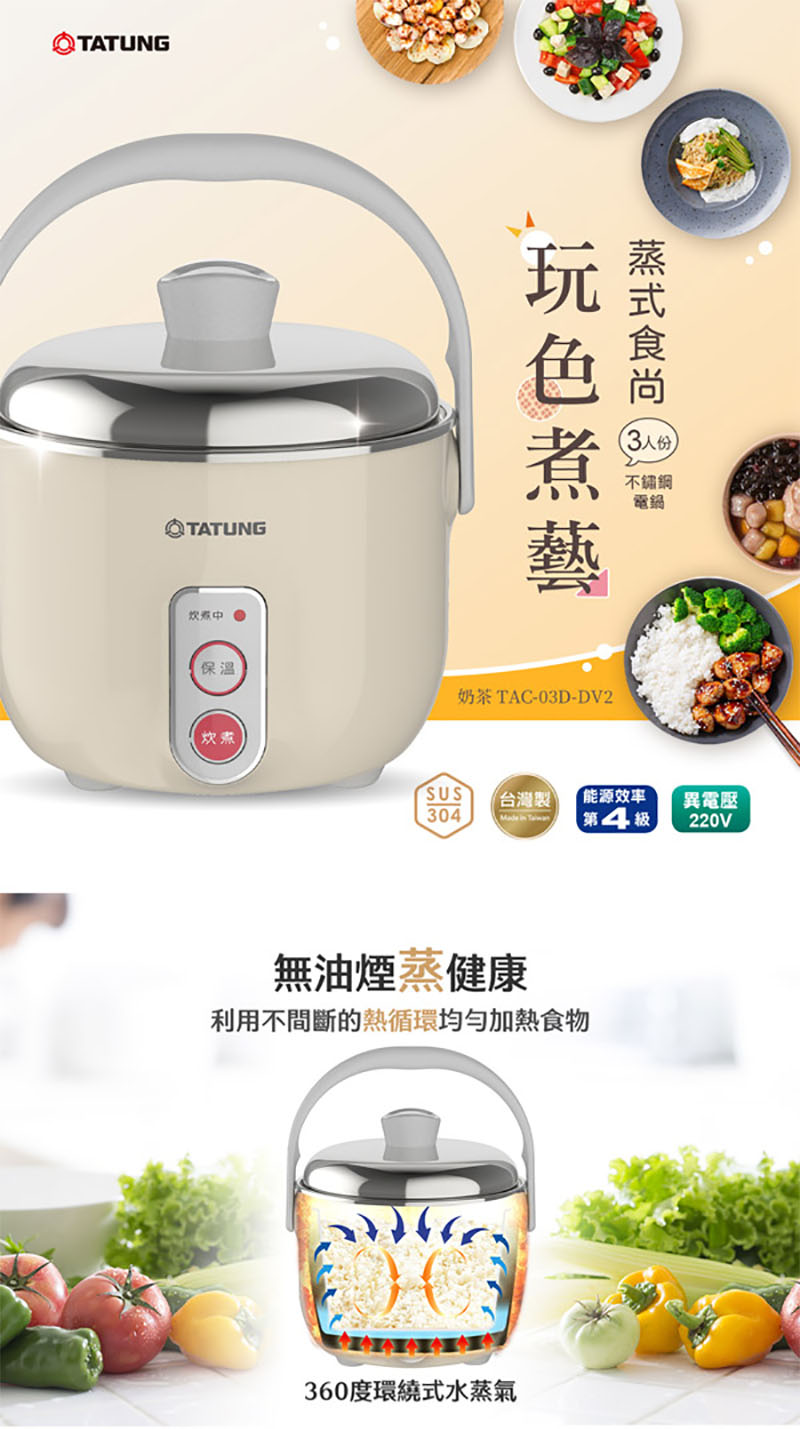 TATUNG大同 220V異電壓 3人份奶茶色不鏽鋼配件電鍋 /台 TAC-03D-DV2BI