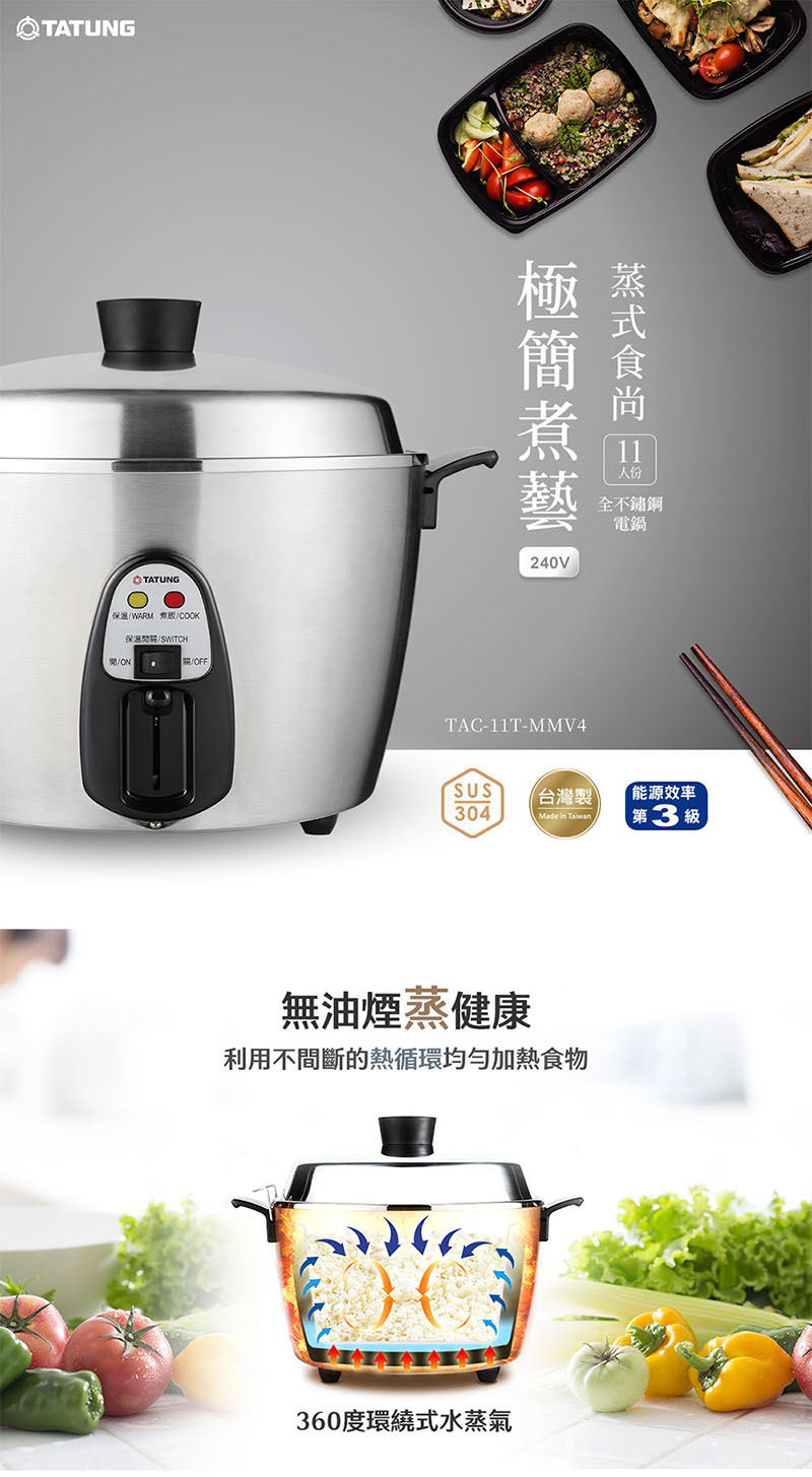 TATUNG大同 240V異電壓 11人份全不鏽鋼電配件電鍋 /台 TAC-11T-MMV4
