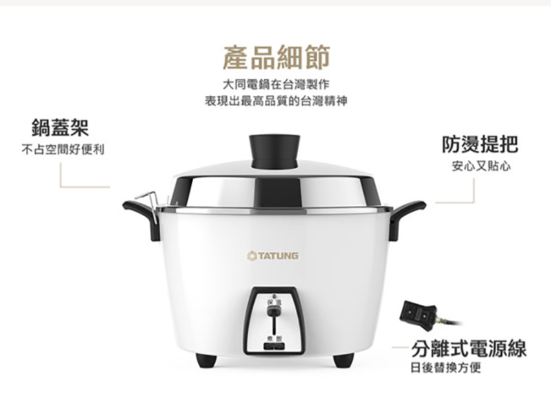 「大同」創立至今已近百年,為華人世界國貨代名詞,產品橫跨數位視訊、數位週邊、家電、新能源、能源資訊、重電、電線電纜、馬達等領域,經典家電產品「大同電鍋」於1960年問世,便開啟了台灣廚房電化革命,一直以來陪伴著你我成長,至今市佔率已超過九成,成為臺灣在地傳奇,也是全球華人的共同記憶。