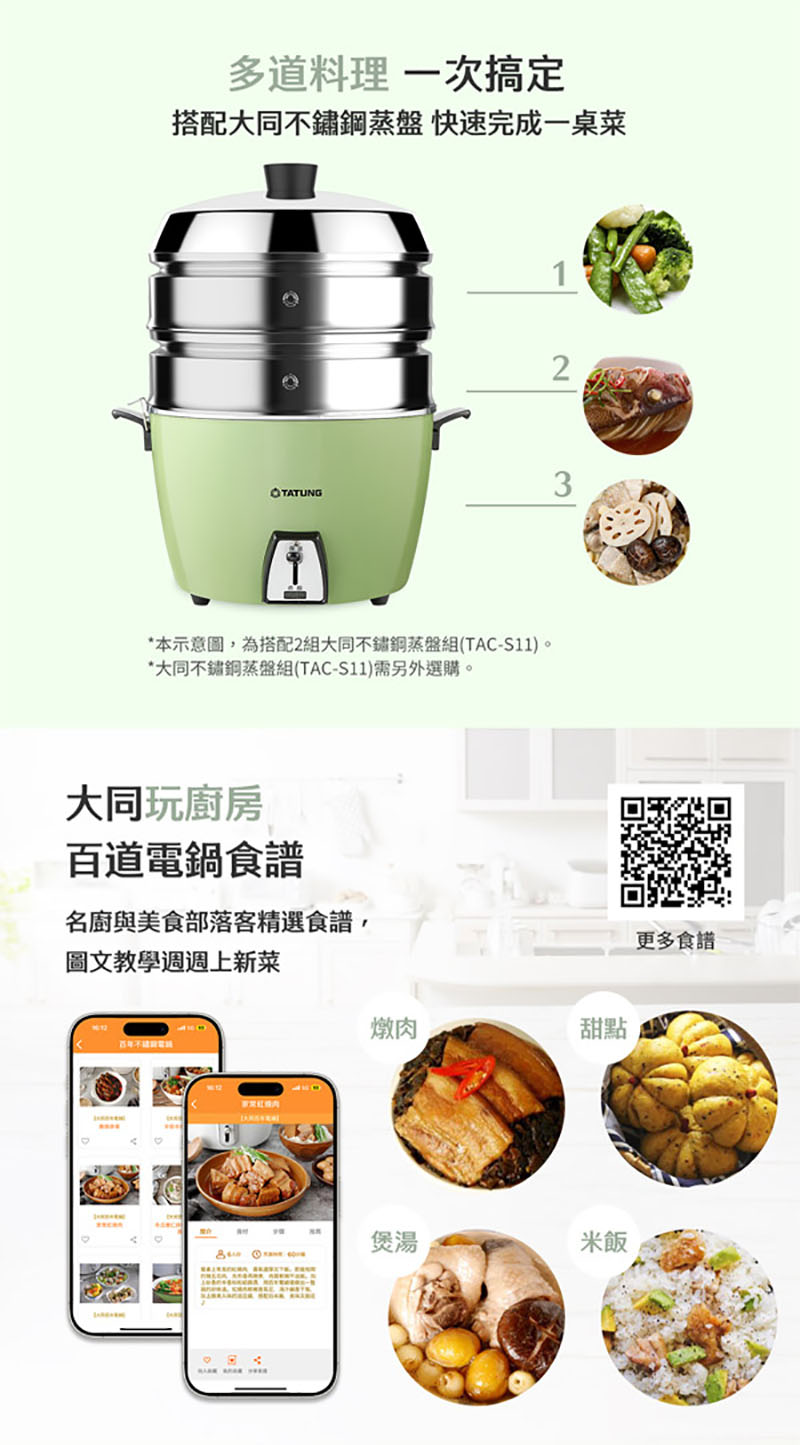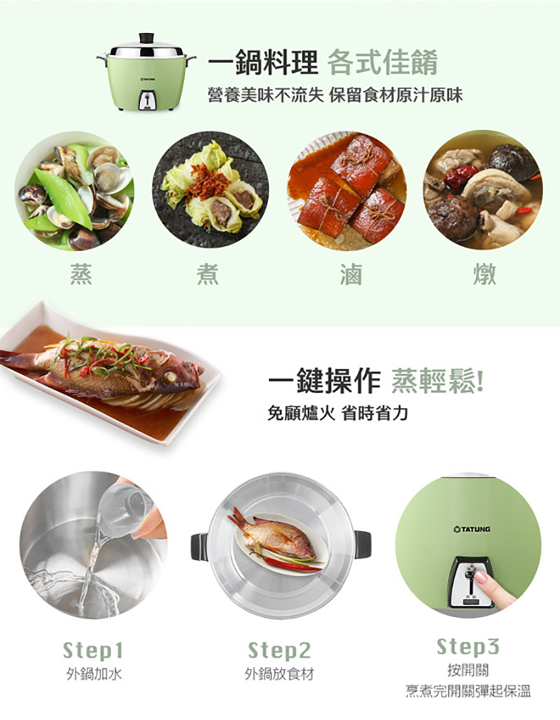 ◎多元料理,煮飯/粥、蒸、滷、燉多用途
