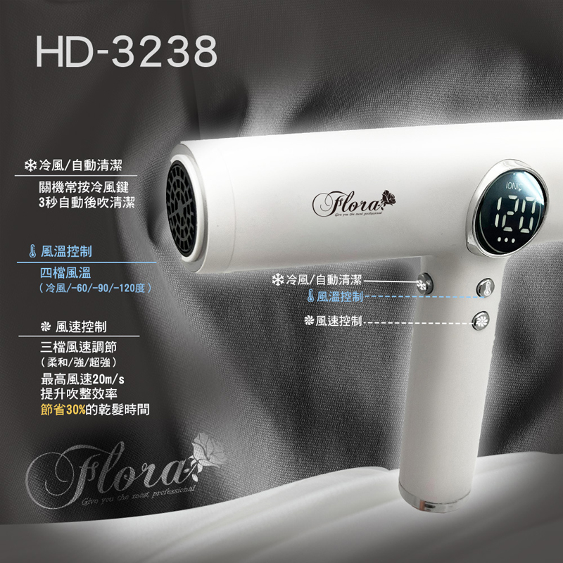 三擋風速(柔和、強、超強)提升吹整效果、節省30%乾髮時間