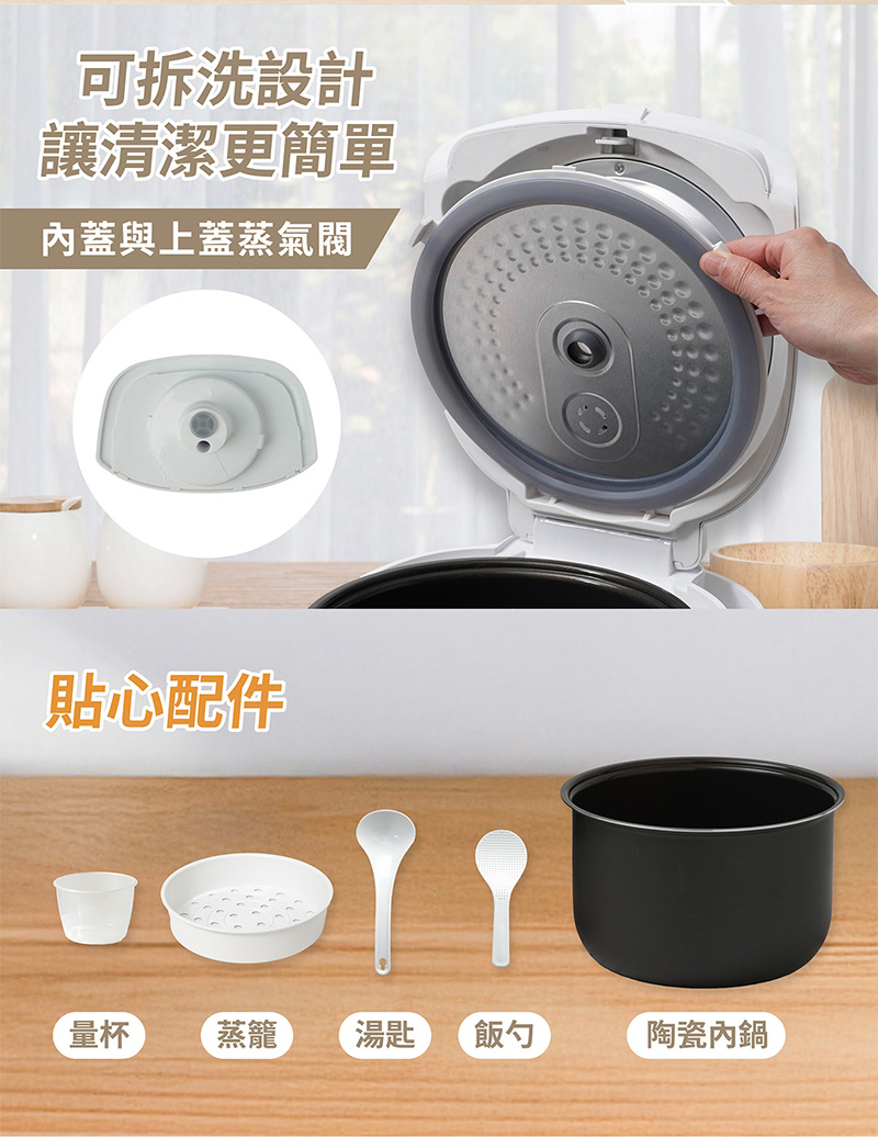 ◎可拆洗內蓋、蒸氣閥清潔方便