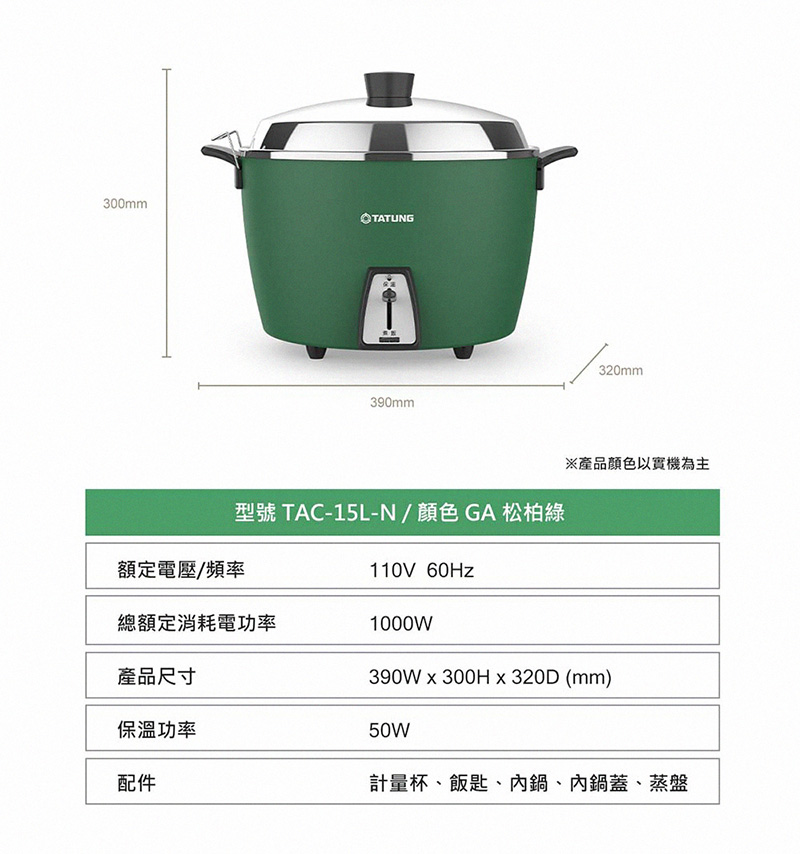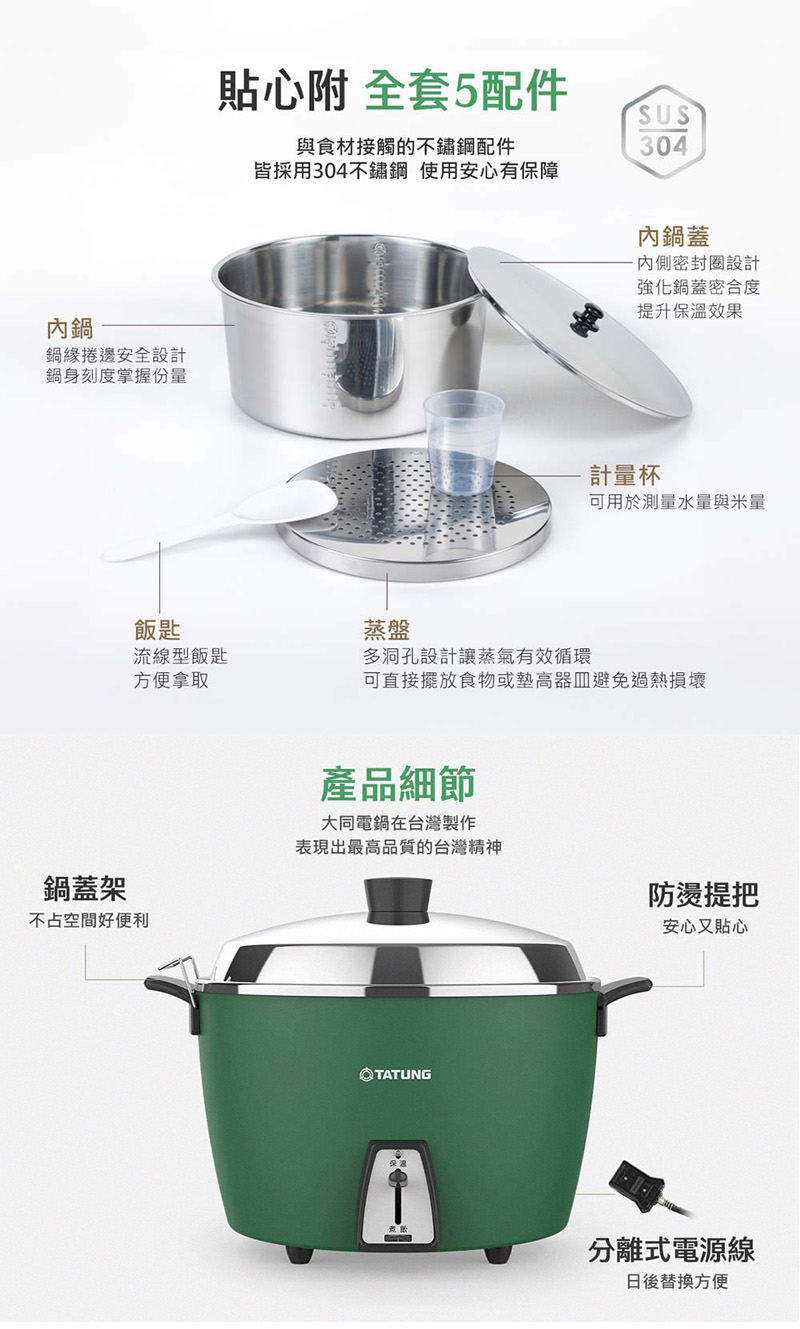 配件:內鍋、內鍋蓋、蒸盤、量米杯、飯匙