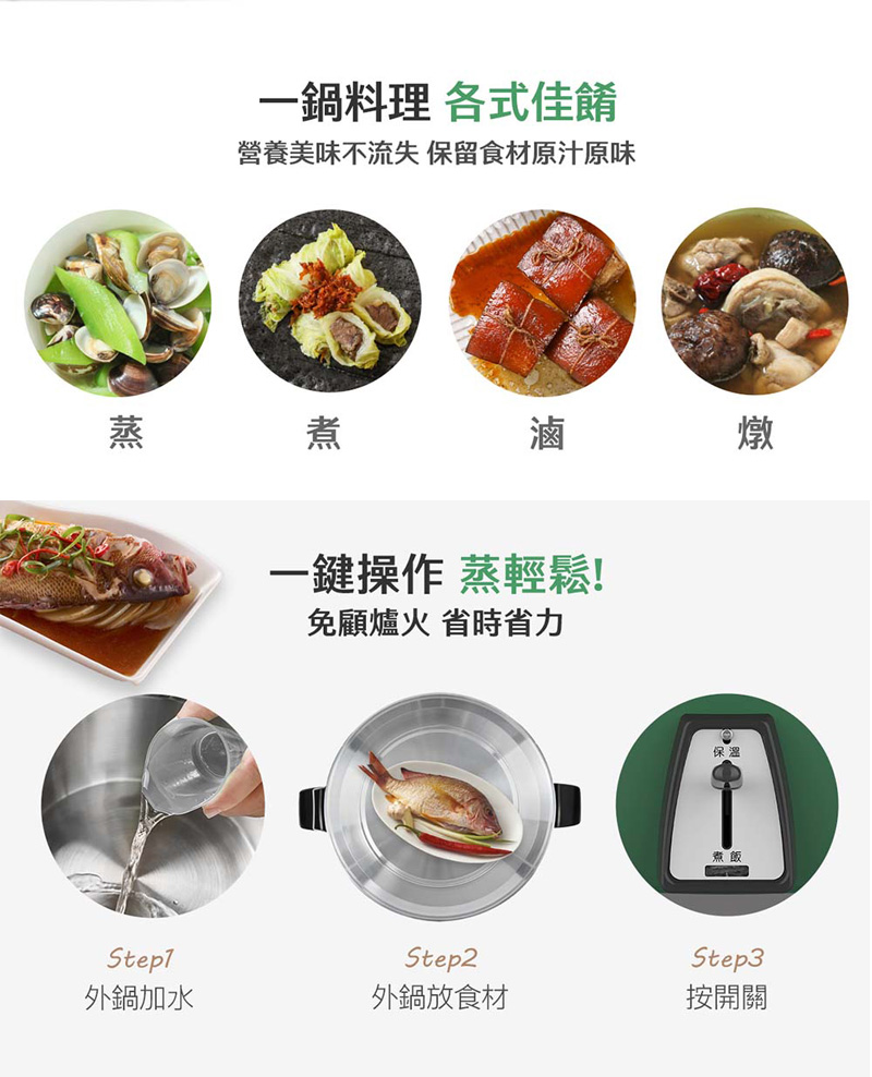 ◎多元料理,煮飯/粥、蒸、滷、燉多用途