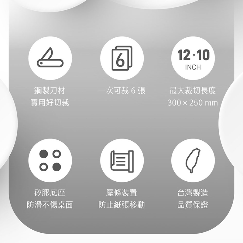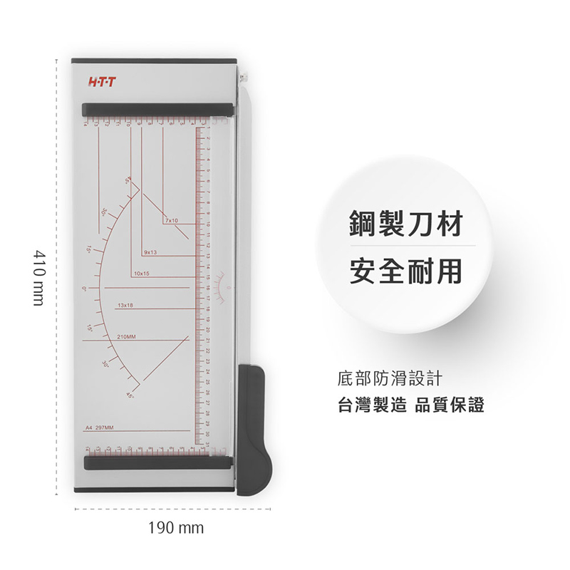 【商品特色】 A4尺寸裁紙機 台灣製造 品質保證 鋼製刀材安全耐用 底座防滑設計 最大裁切長度32公分 最大裁切張數 : 6 張 【商品規格】 國際條碼:4710761898001 商品尺寸:410 X 190 X 40 mm 商品重量:約0,91 kg 包装重量:約1.04 kg 商品顏色:銀色 材質:金屬、塑膠 商品原產地:台湾 【品牌介紹】 公司成立於1985年,歷經了轉盤式電話、按鍵式電話、 無線電話、B.B.Call及大哥大等商品轉換年代,隨著資訊、通訊市場成長, 多年來公司能與市場競爭而不被取代,所秉持的信念就是『誠信、品質、服務、創新』。 責任代號:QMW 廠商代號:5C2V