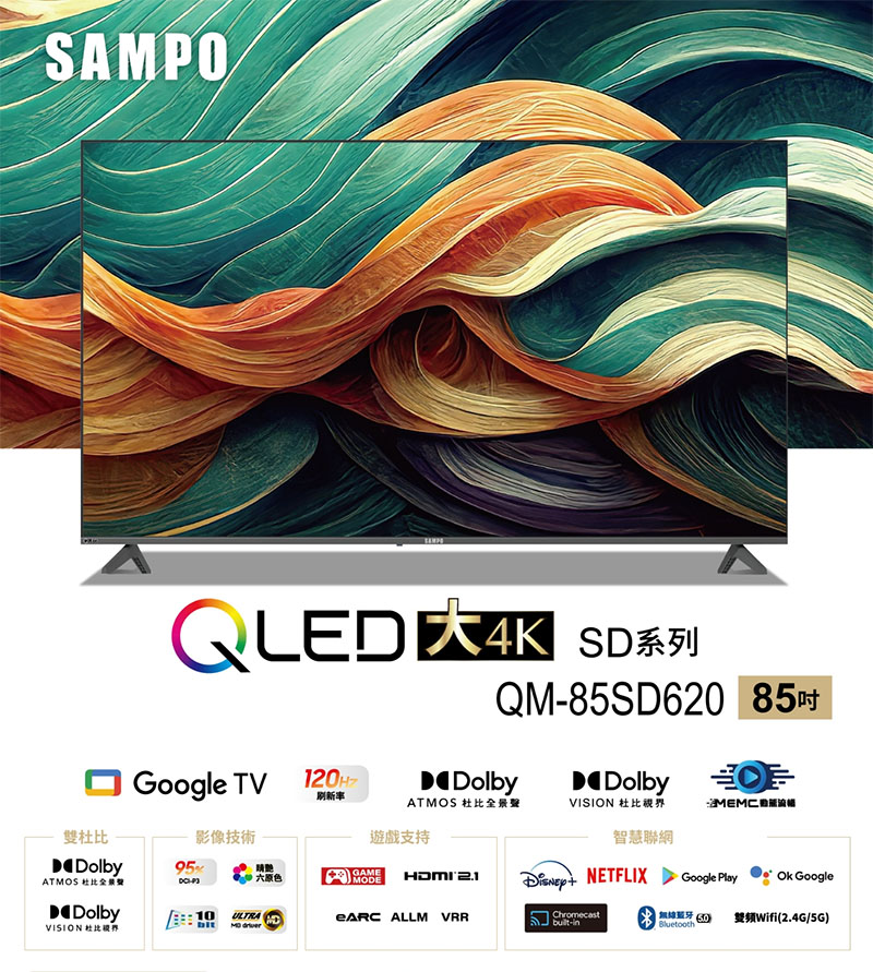 ◎QLED量子點高色域 色域標準DCI-P3達95%以上