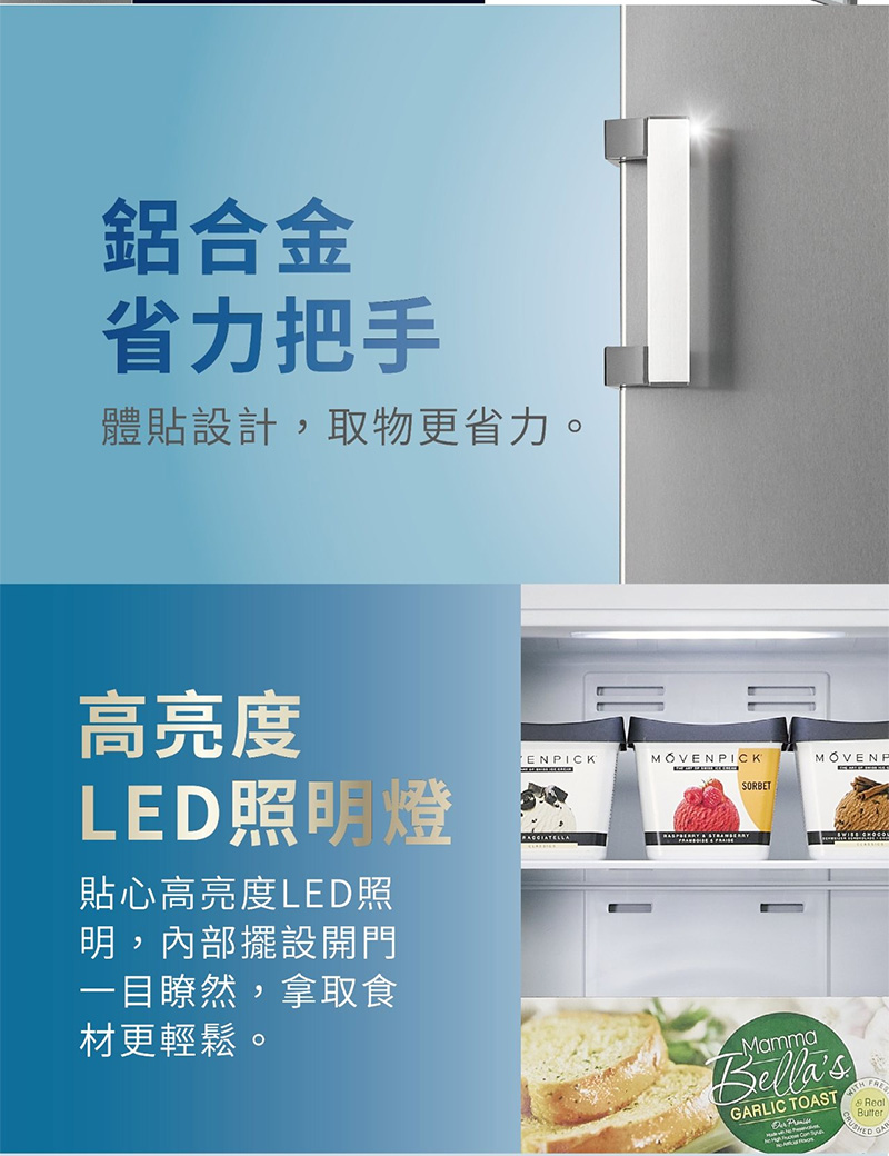 ◎金屬背板、LED照明燈、鋁合金省力把手