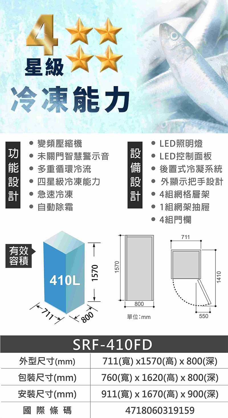 尺寸:(寬x高x深mm) 711x1570x800(含把手)