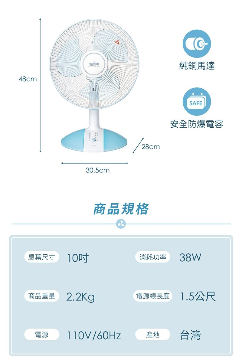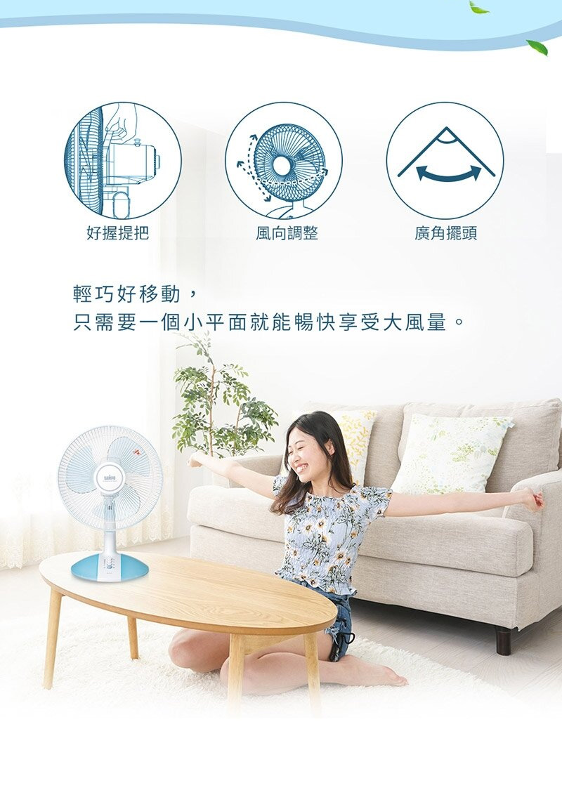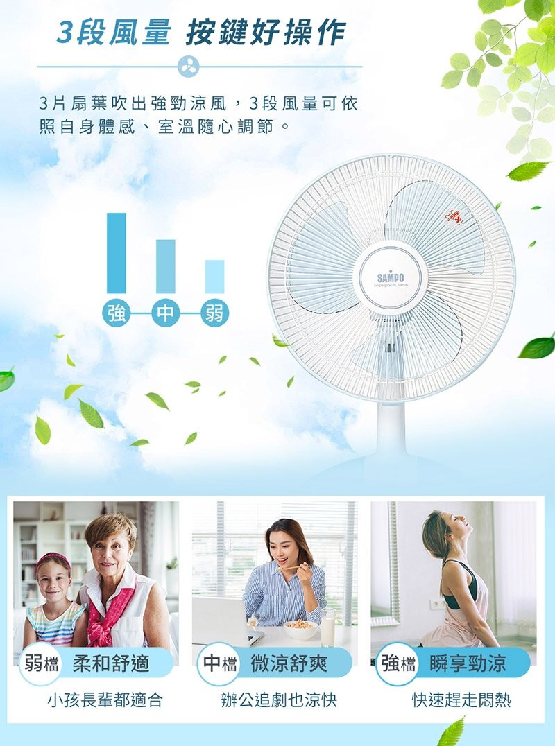 ◎三片扇葉運轉,涼爽舒適