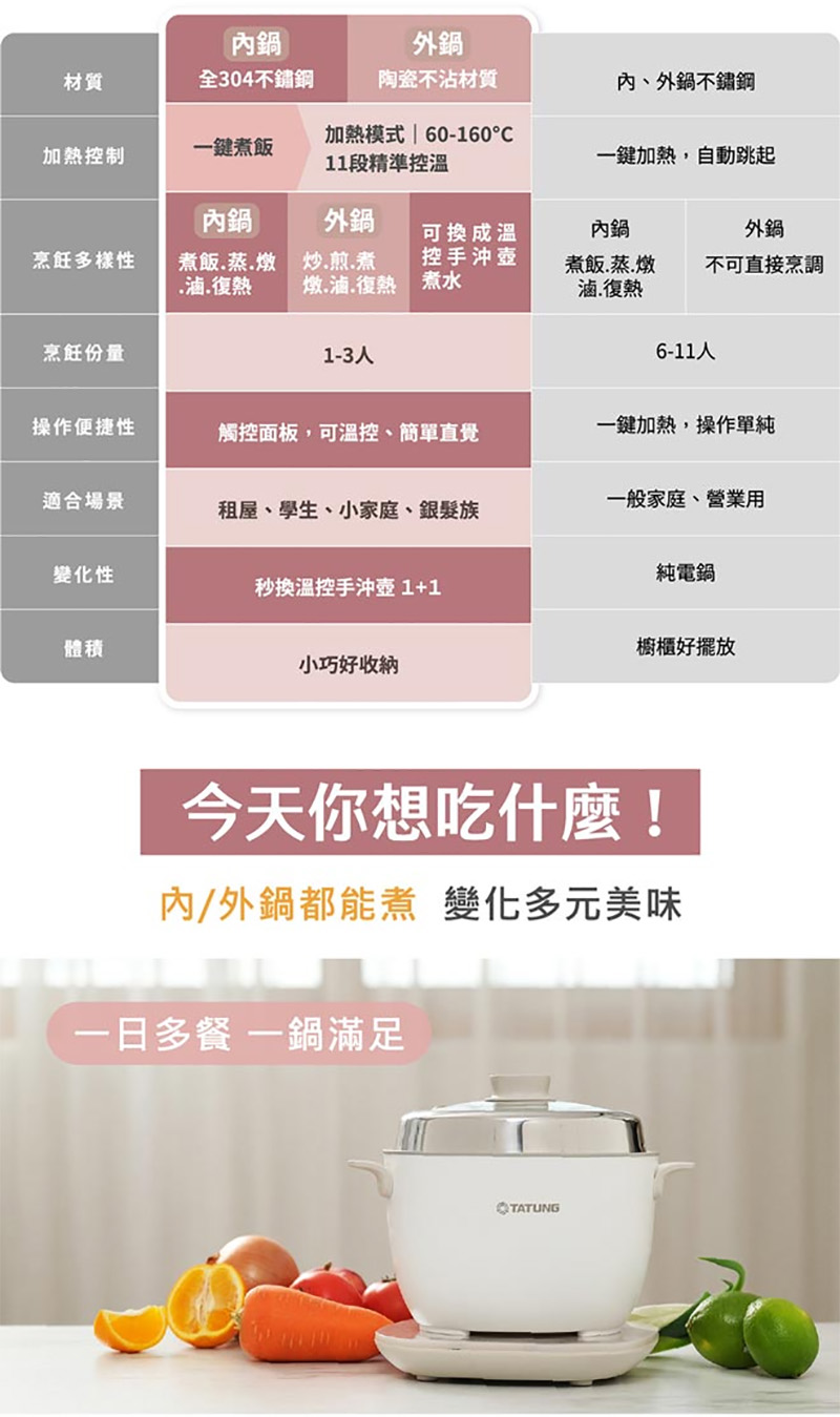 2種加熱|一鍵煮飯、60-160°C多段加熱