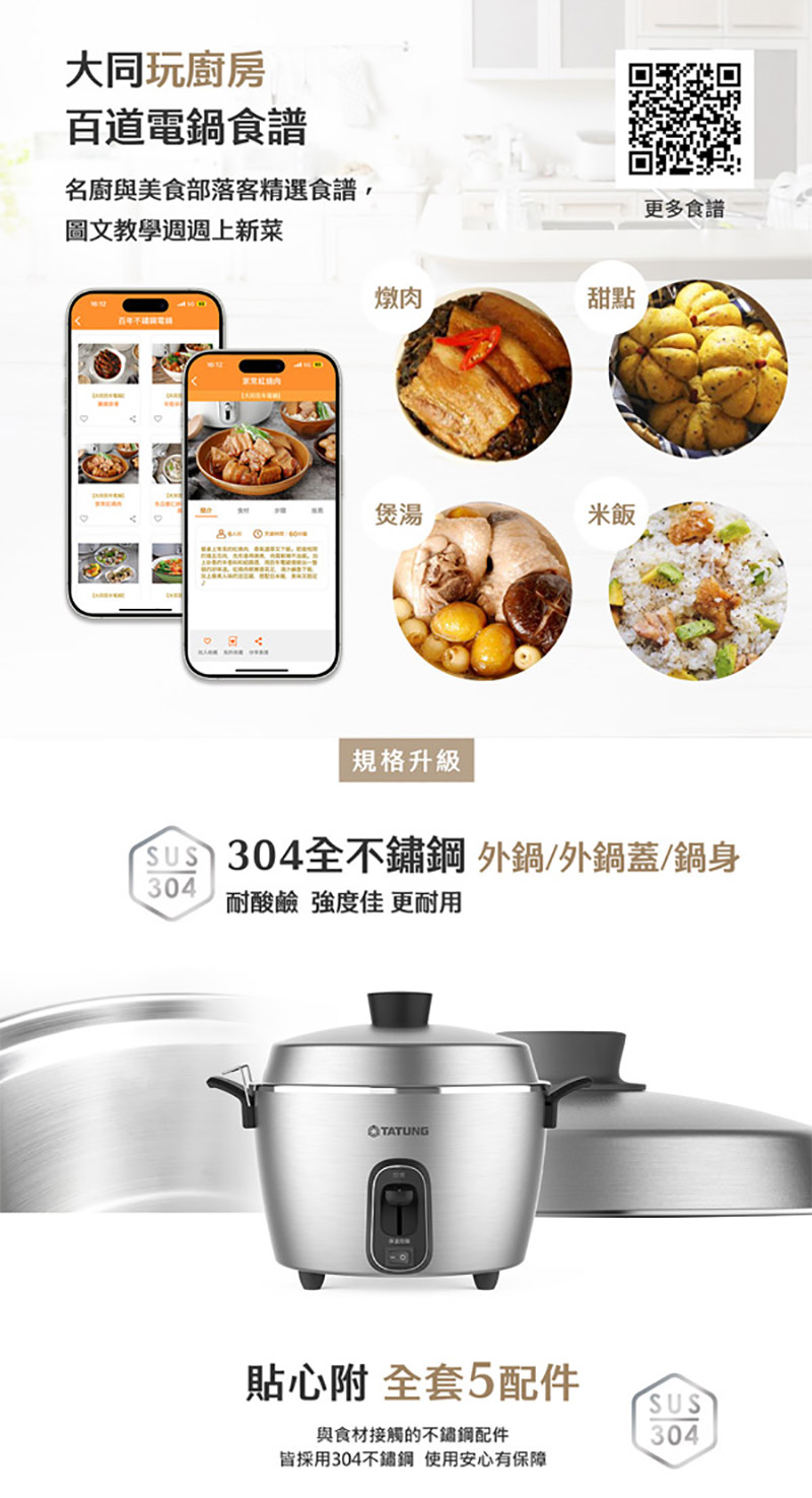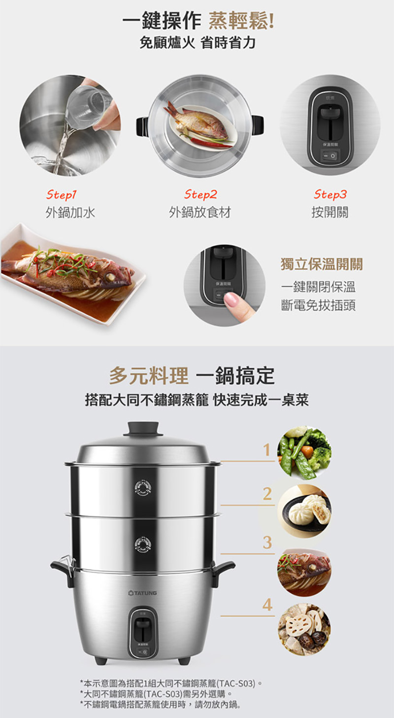 ◎多元料理,煮飯/粥、蒸、滷、燉多用途