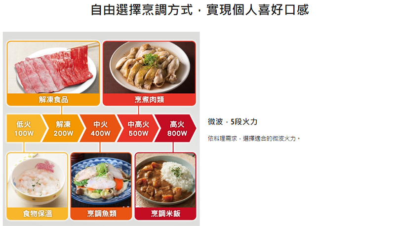 手動火力調節:微波5段