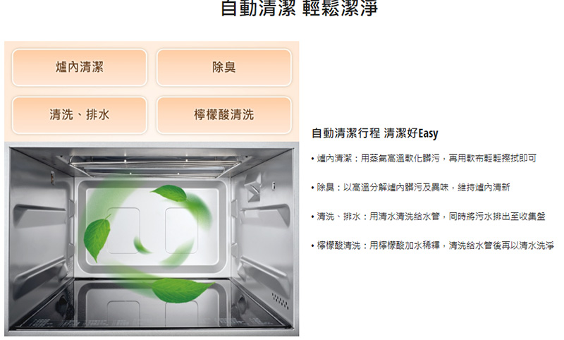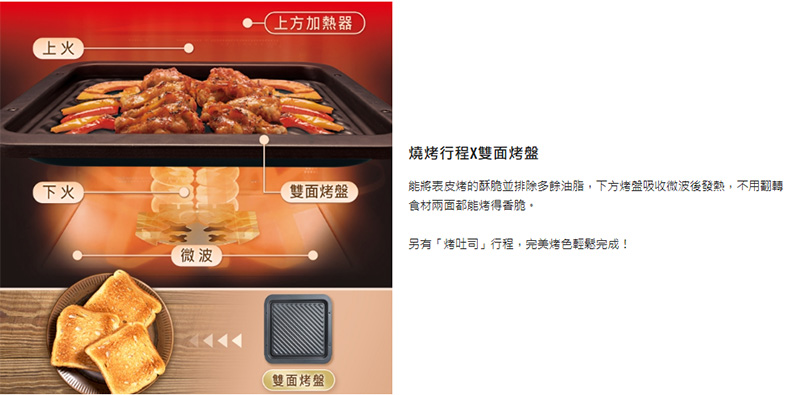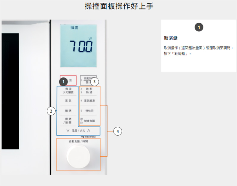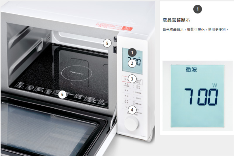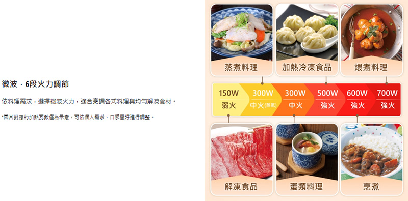 備註:短時微波輸出功率 950 W 在自動菜單的「飲料」功能中起作用。