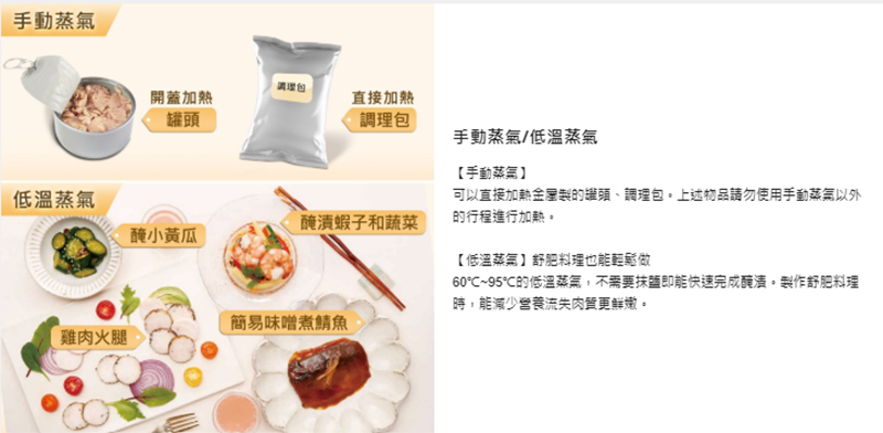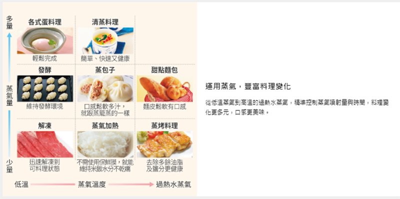 蒸氣功能:過熱水蒸氣 、低溫蒸氣