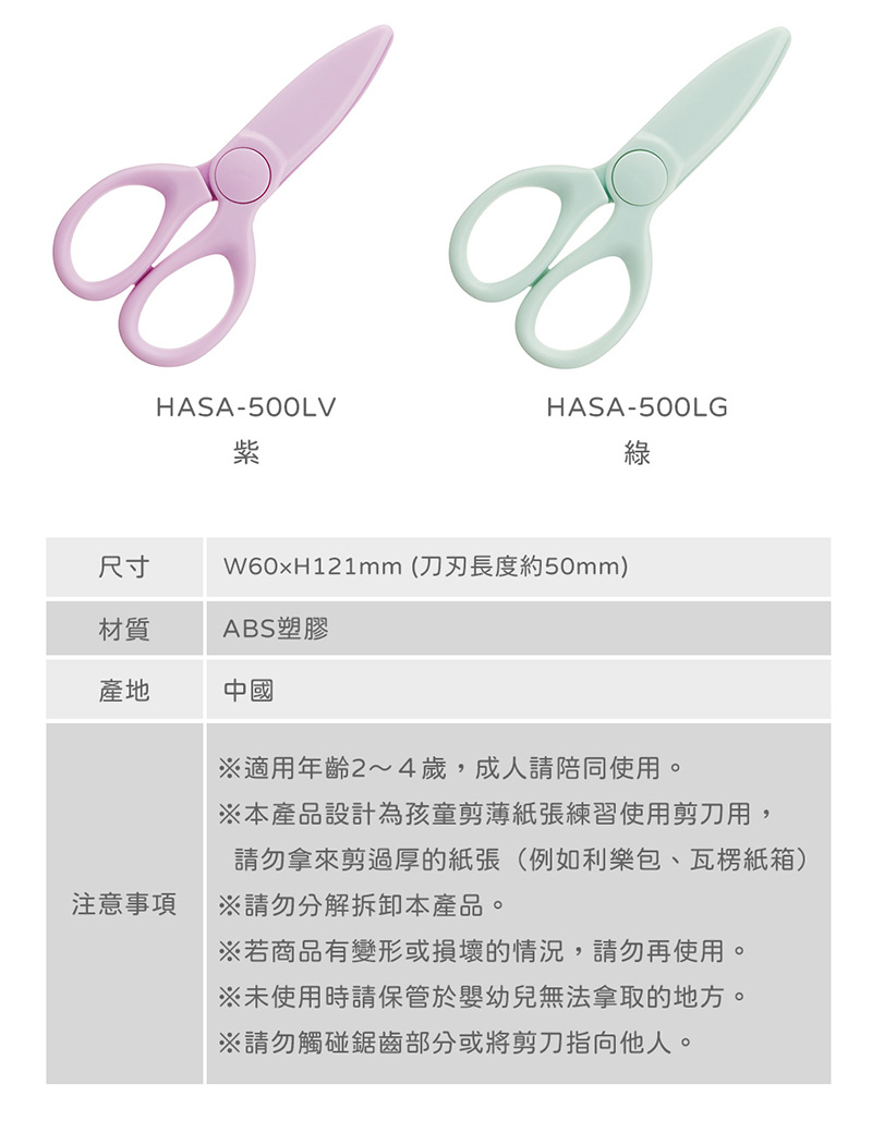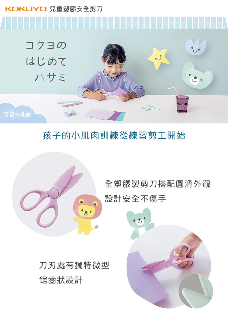 KOKUYO 兒童塑膠安全剪刀 綠0841/紫0834 /支 KOHASA-500LG/KOHASA-500LV