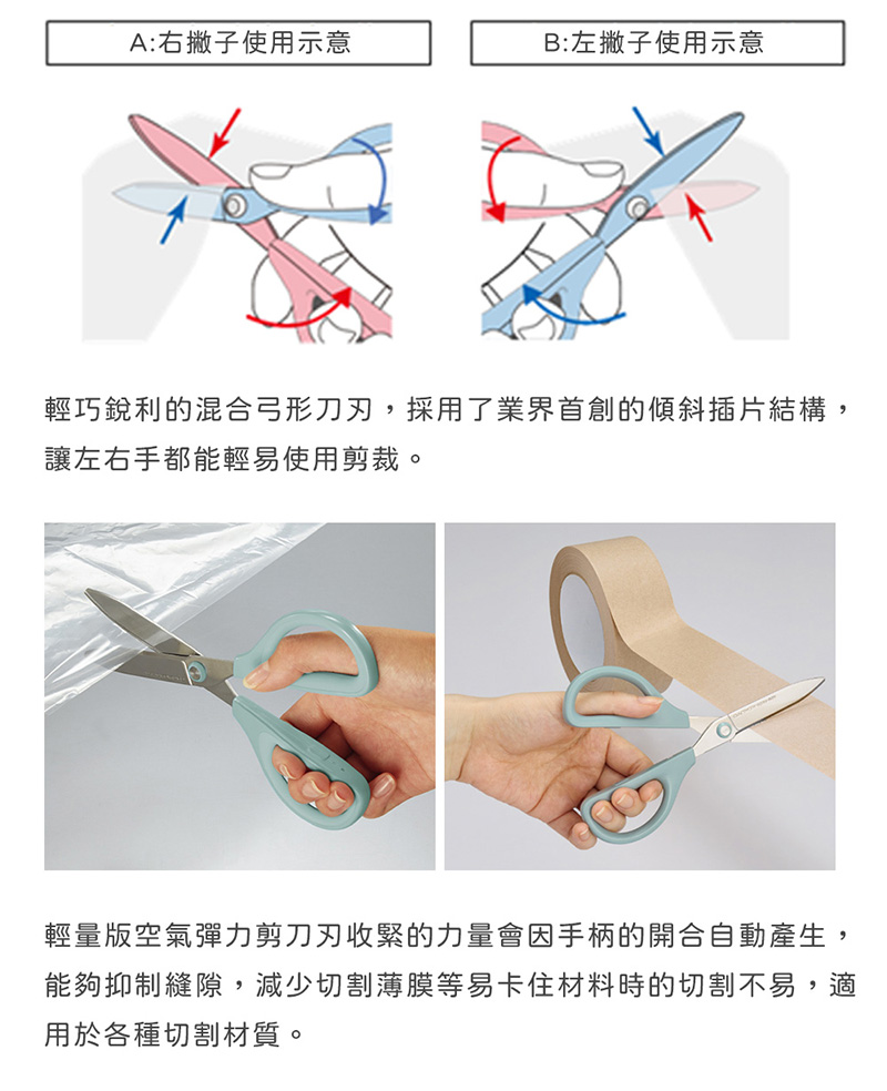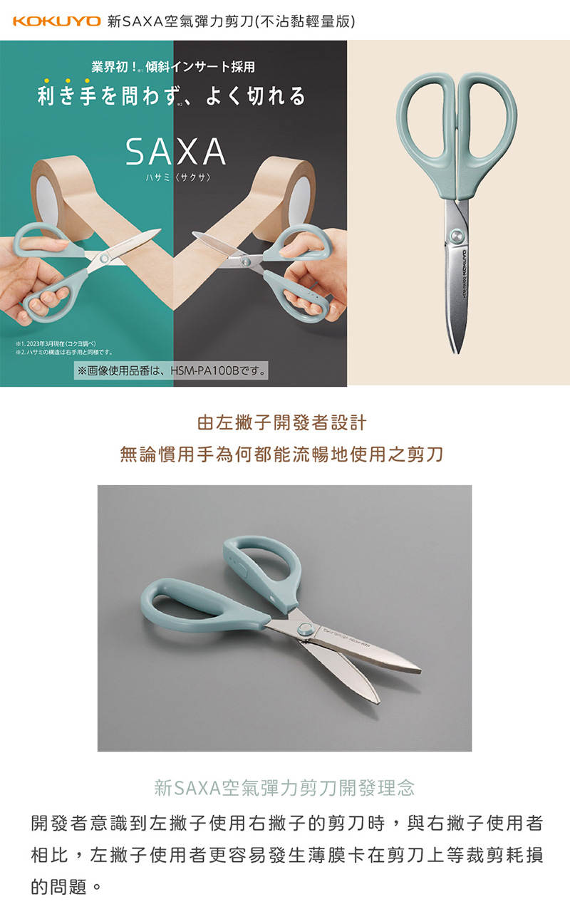 KOKUYO SAXA 空氣彈力剪刀 不沾黏輕量版 藍5449 /支 KOHSM-PA100B