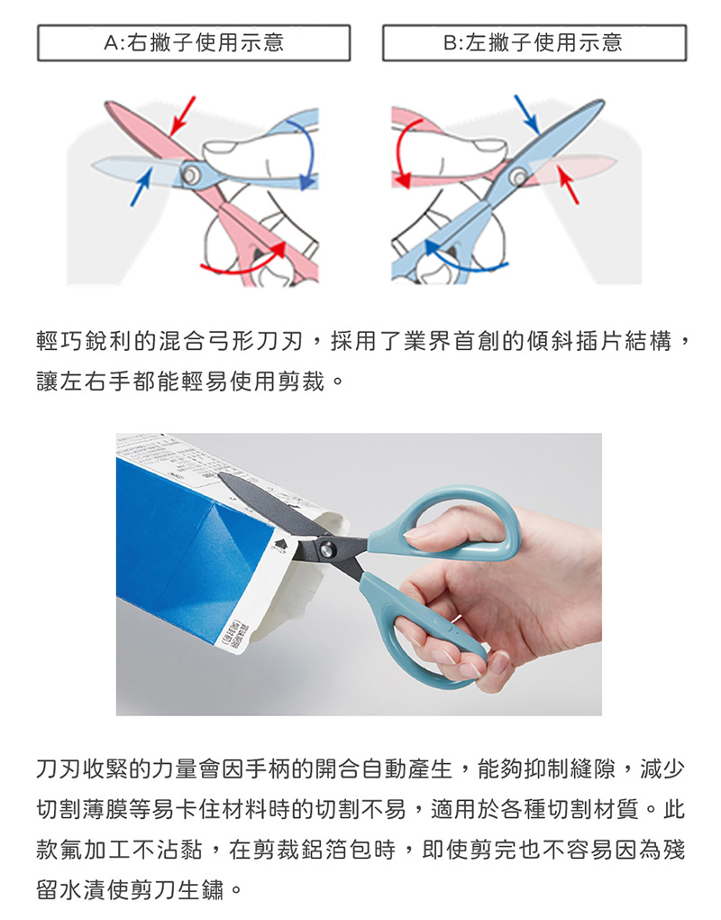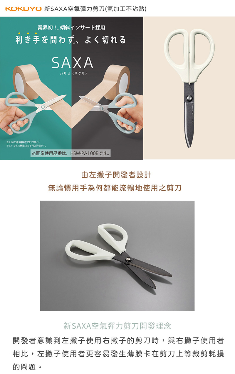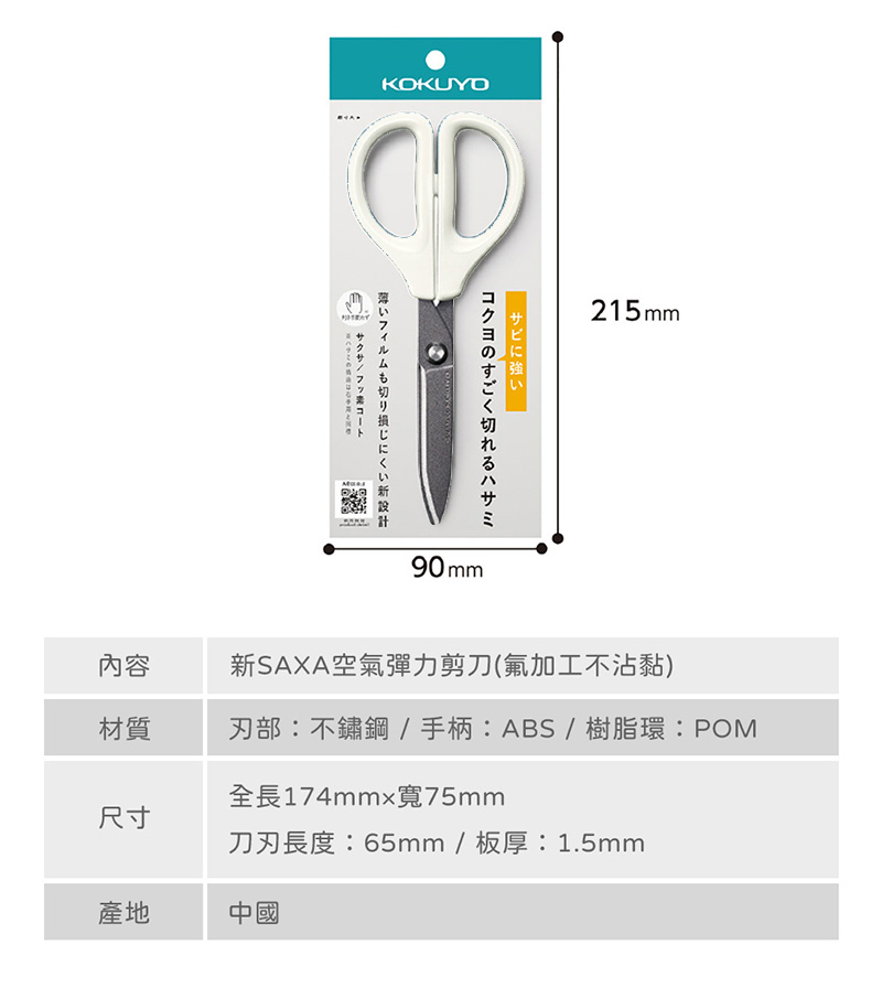 KOKUYO SAXA 空氣彈力剪刀 氟加工 不沾黏 白5524 /支 KOHSM-PFA100W