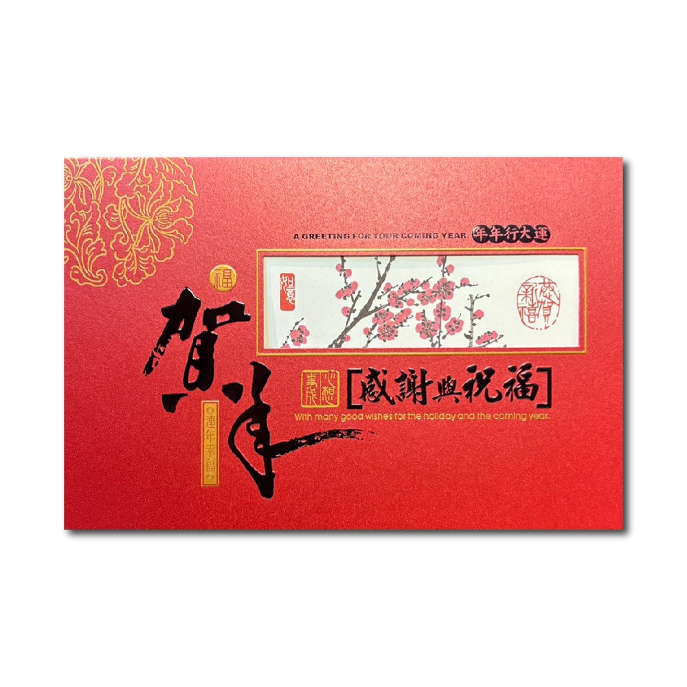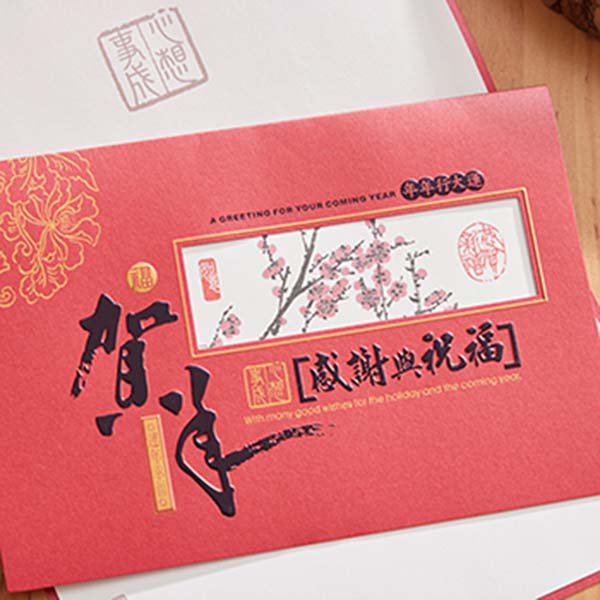 卡片大小: 13*19(cm),250磅珠光紅紙