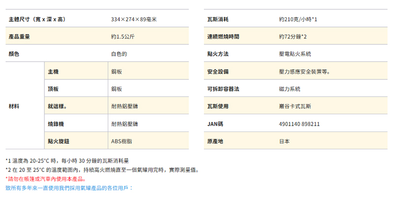瓦斯使用:巖谷卡式瓦斯