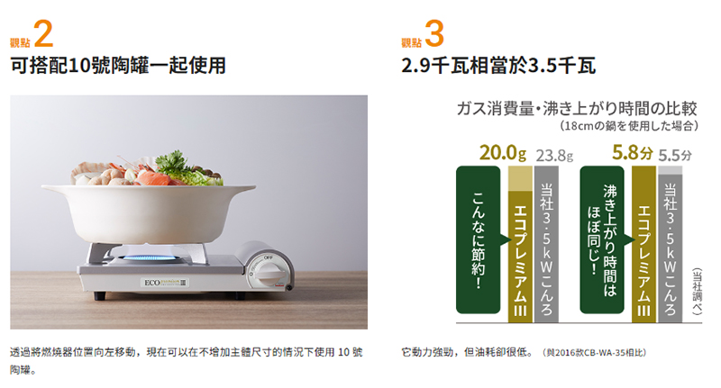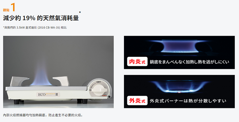 溫度為 20-25°C 時,每小時 30 分鐘的瓦斯消耗量