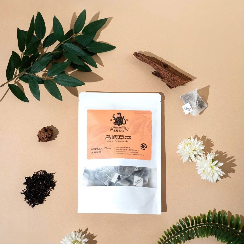萬壽菊 × 茶葉的自然結合:散發百香果般的果香,搭配少量茶葉,帶出清爽層次