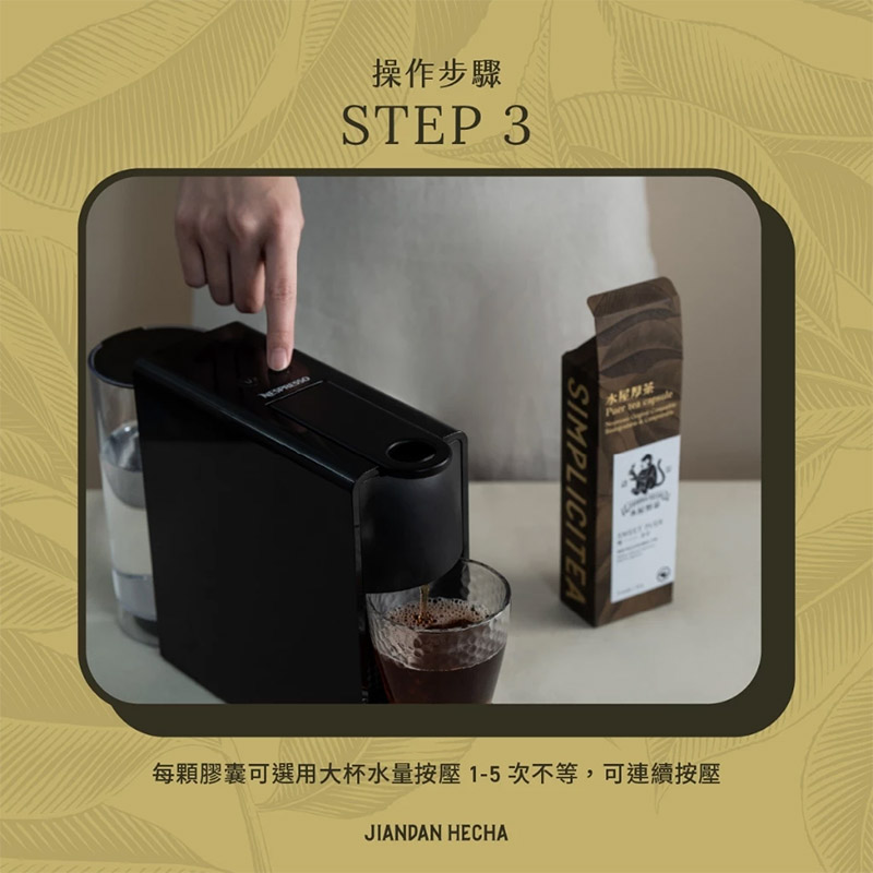 厚步日,以經典普洱茶演繹濃醇茶韻,一顆膠囊,泡出厚實順口的熟成風味。