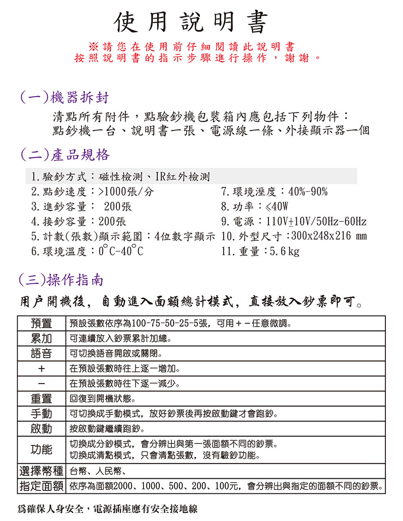 鑑偽功能:磁性檢驗/IR紅外線檢驗/紫光檢測
