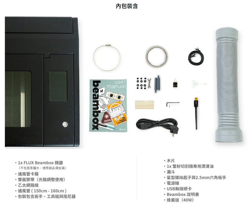 FLUX Beambox 桌上型雷射切割機,採用 40W CO2 雷射光源,