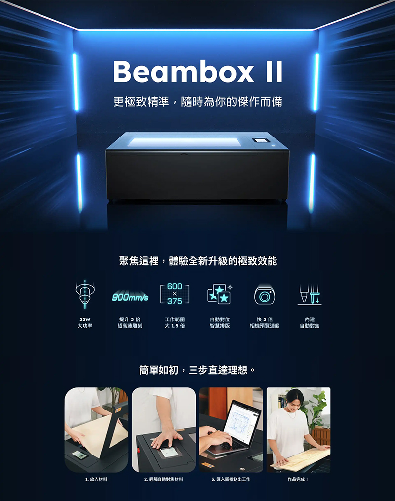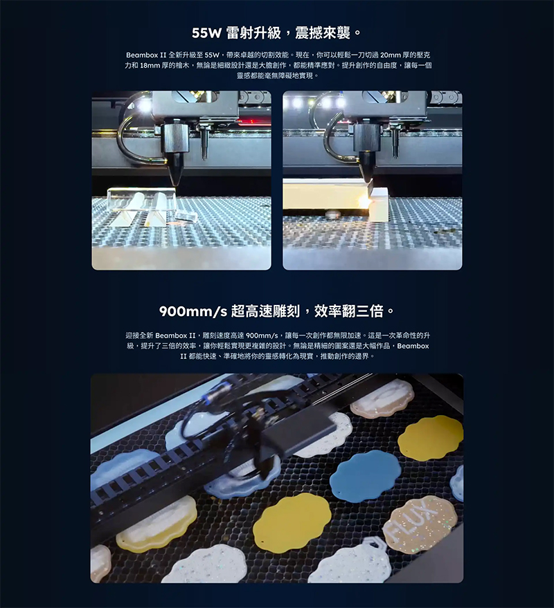 Beambox II 升級雷射瓦數至 55W CO2、雕刻速度來到 900mm/s、