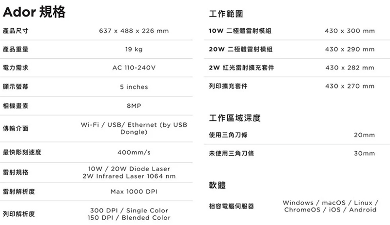 Ador,世界首創彩色列印雷射切割機,內含二極體、