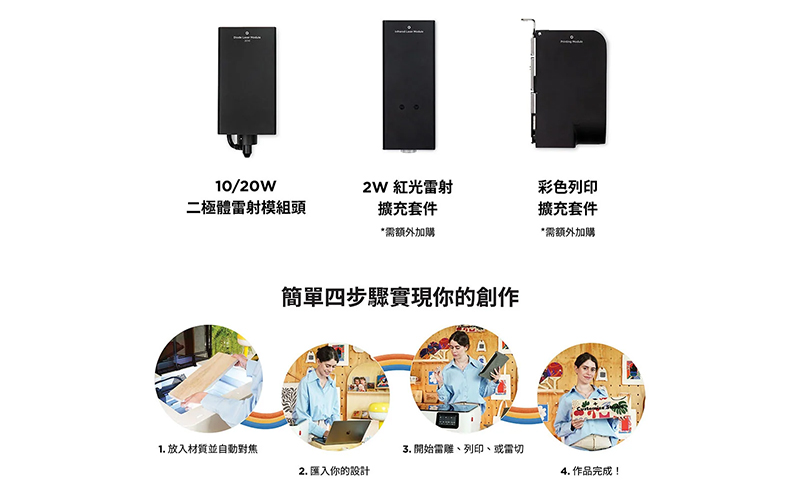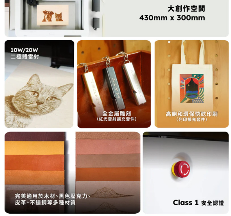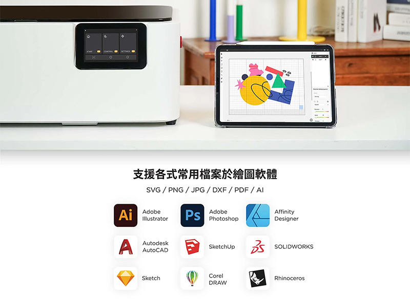提供使用者一機完成雕刻、切割、彩色列印的多重創作體驗。