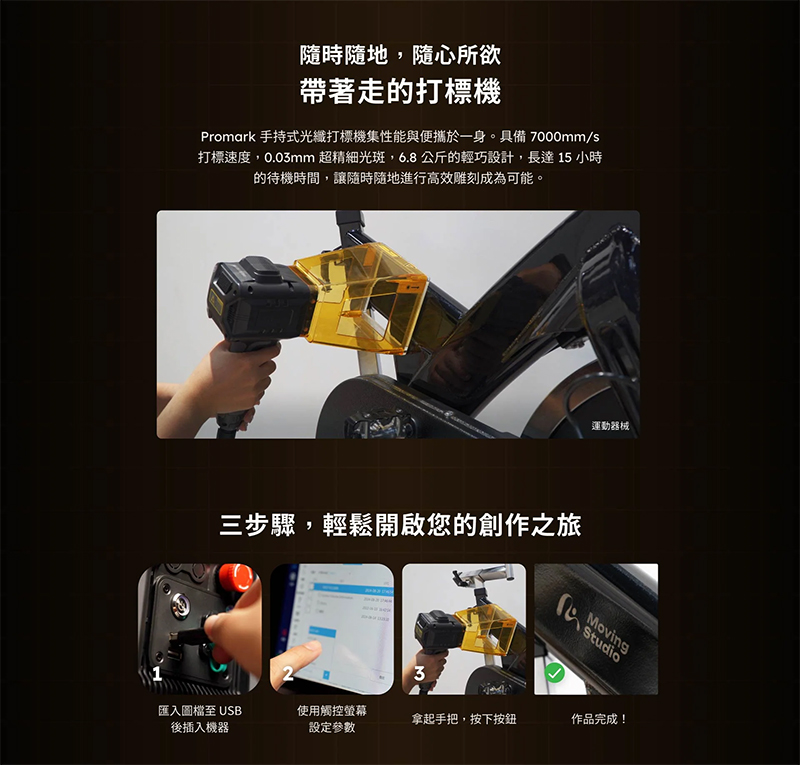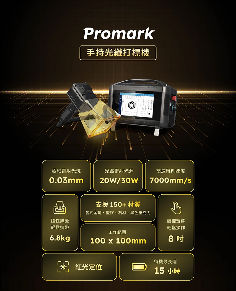 Promark 手持式光纖打標機集性能與便攜於一身。
