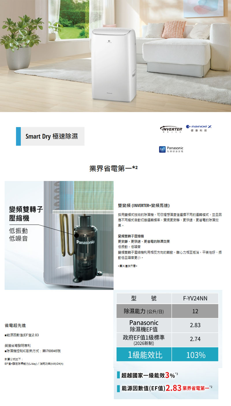 ◎除濕能力 12公升/日(室溫27°C/相對濕度60%)