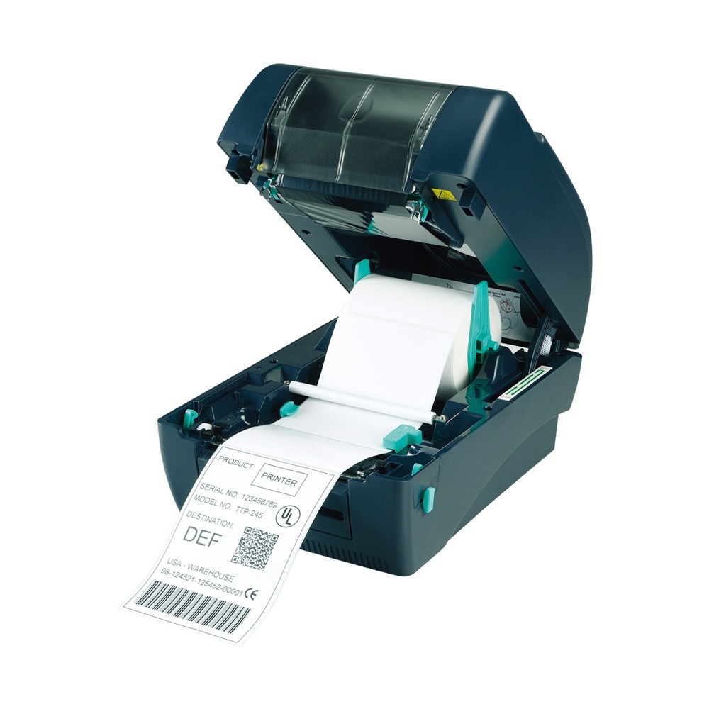 TTP-247 機種採用貝殼式上掀機構設計,內部可容納300公尺長碳帶以及5英吋外徑紙卷,搭配外部紙卷架可使用高達8.4英吋外徑紙卷;獨特的「雙馬達」設計,讓TTP-247裝載外掛紙卷高速列印時,依然遊刃有餘。超大的記憶容量(4MB Flash ROM、8MB SDRAM) 可內建一組字型(繁體中文、簡體中文、日文漢字、韓文字型四者擇一);SD卡插槽讓記憶體最高可擴充至4GB,可因應各式列印需求儲存大量的資料。除了操作簡便、堅固耐用,TTP247 機種亦提供完整的傳輸介面,標準配備串列埠(RS-232)、並列埠(Parallel Port)及USB三種通訊介面。