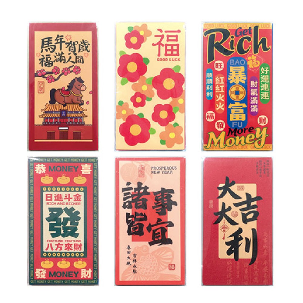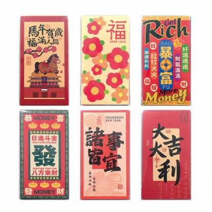品名:好運連連金砂彩印紅包袋(每袋6圖)